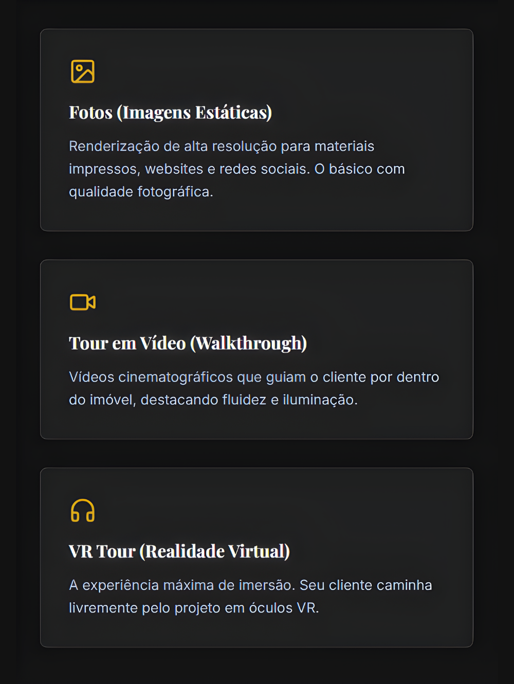 A diferença entre mostrar e fazer sentir está no realismo. Utilizamos tecnologia de ponta para criar imagens e vídeos realistas e cativantes. Garantimos que cada detalhe — do brilho do mármore à textura da madeira — seja reproduzido com fidelidade absoluta.